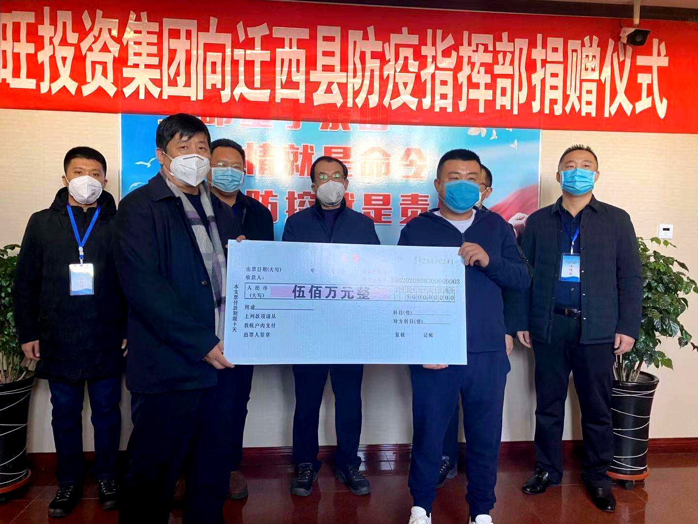 勇擔(dān)責(zé)任、抗擊疫情! 2020年2月3日上午,河北亨旺投資集團(tuán)董事長(zhǎng)付學(xué)飛通過(guò)紅十字會(huì),向遷西縣疫情防控工作指揮部定向捐款500萬(wàn)元。其中向各鄉(xiāng)鎮(zhèn)(街)定向捐款260萬(wàn)元,向三屯、白廟子兩個(gè)衛(wèi)生院定向捐款40萬(wàn)元。縣委副書(shū)記、縣長(zhǎng)王錦山,副縣長(zhǎng)周定奎出席捐款儀式。