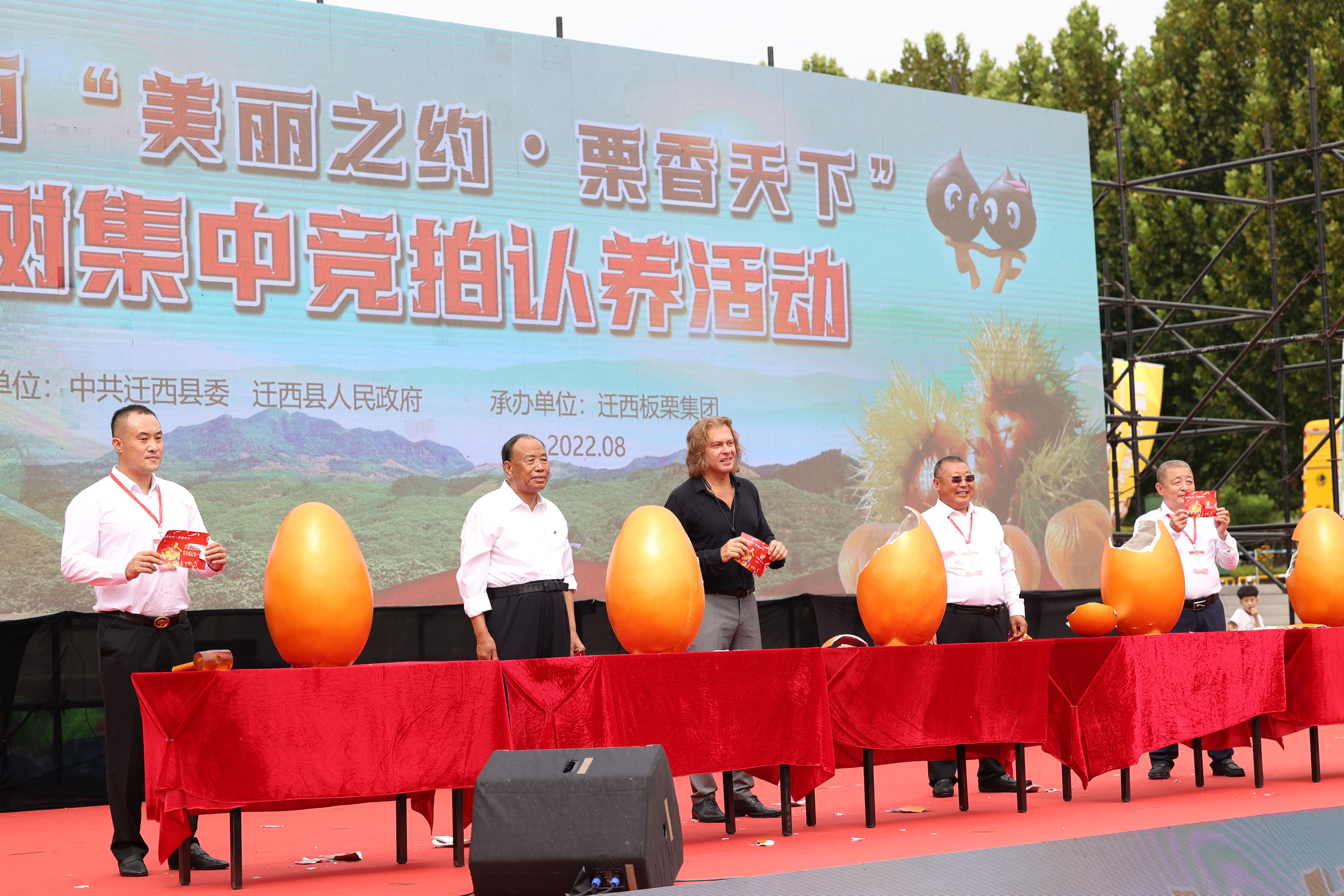 2022年8月21日上午,我縣在中國板栗博物館廣場(chǎng)開展首屆中國遷西“美栗之約?香滿天下”板栗樹集中競(jìng)拍認(rèn)養(yǎng)活動(dòng)。中國工程院院士尹偉倫,北京農(nóng)學(xué)院植物科學(xué)技術(shù)學(xué)院院長(zhǎng)秦嶺,農(nóng)業(yè)農(nóng)村部中國綠色食品發(fā)展中心主任張華榮,河北省林草局副局長(zhǎng)王宇等各級(jí)領(lǐng)導(dǎo)和來自日本、意大利、俄羅斯、烏克蘭等國家的外國友人、媒體記者出席活動(dòng)。中國食品土畜進(jìn)出口商會(huì)板栗分會(huì)秘書長(zhǎng)孫宇,唐山市政協(xié)副主席董學(xué)忠,遷西縣委書記蔡宗健分別在認(rèn)養(yǎng)活動(dòng)上致辭。遷西縣四大班子領(lǐng)導(dǎo)出席活動(dòng)。